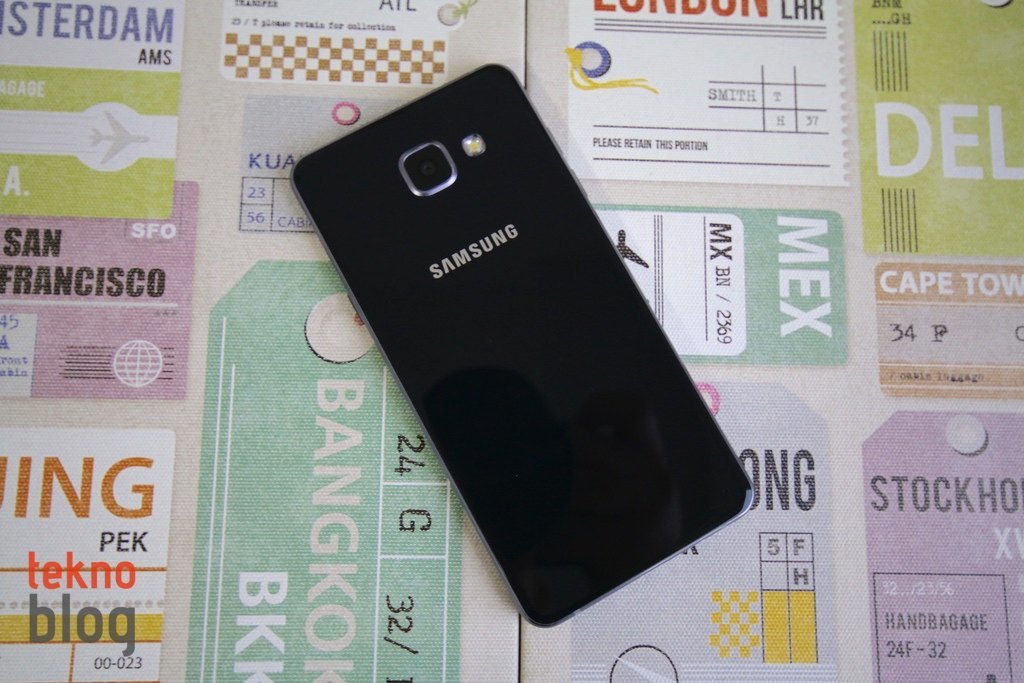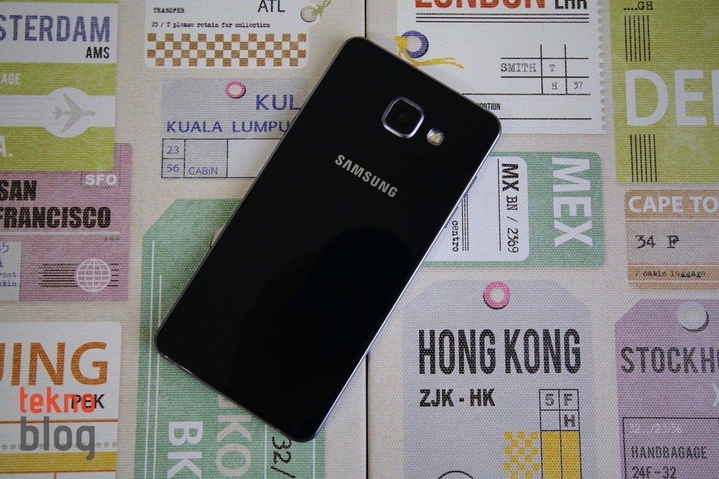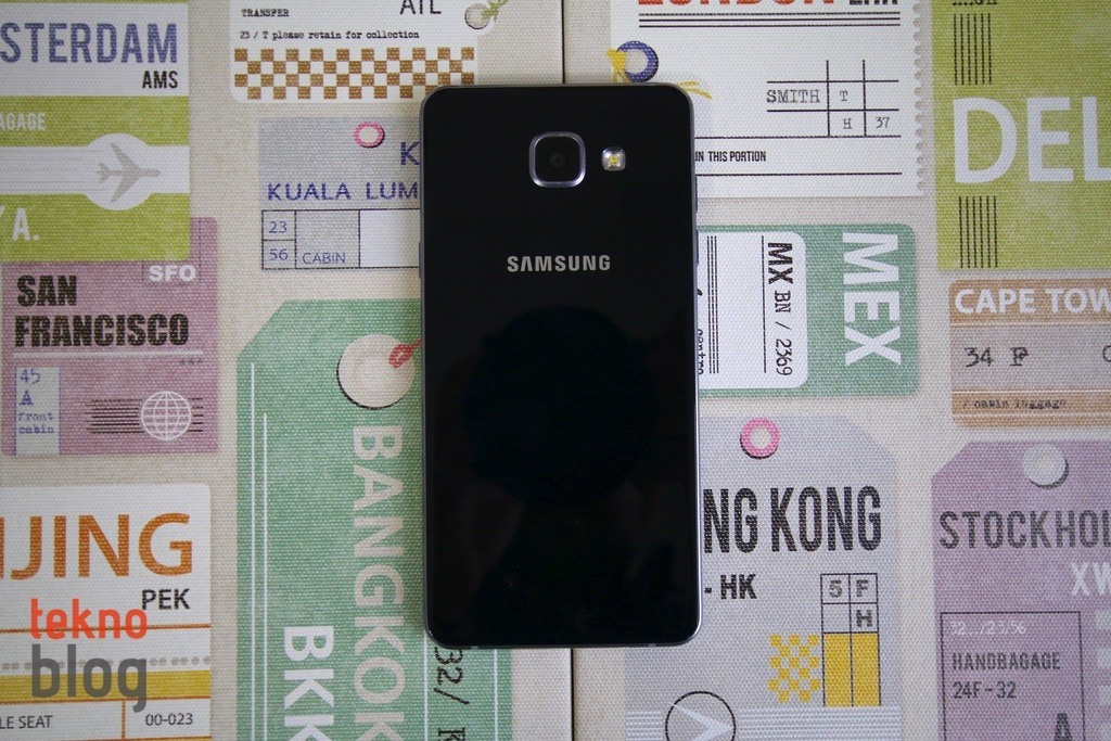 Alt kenara baktığımızda microUSB portu, 3.5 mm. kulaklık jakı, hoparlör ve ana mikofonu görüyoruz. Üst kenarda da ikinci mikrofon bulunuyor. Ayrıca metal kenarlar boyunca, alt ve üst kenarlara yerleştirilmiş plastik şeritler de anten sistemi için. Gorilla Glass 4 camla kaplı arka yüzeye baktığımızda, 13 megapiksel ana kamerayı, bunun yanında LED flaşı görüyoruz. Bu ikilinin biraz altında da Samsung logosu bulunuyor. Galaxy A5 (2016)’nın elimizdeki çeşidi siyah renge sahipken, bunun dışında beyaz, altın ve pembe renk seçenekleri de bulunuyor. Bu arada metal kenarların siyah renkle uyumlu şekilde geldiğini de belirtmeden geçmemek gerekiyor.