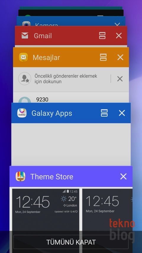 Tıpkı Galaxy A5’te olduğu gibi, A7’de de çoklu pencere desteği bulunuyor. Böylelikle destekleyen uygulamalarda A7’nin 5.5 inç ekranını aynı anda iki uygulama için kullanabilirsiniz. Çoklu pencere desteğine sahip olan uygulamaları, çoklu görev penceresinde açık olan son uygulama pencereleri üzerindeki ikili pencere ikonu yardımıyla anlayabilirsiniz.