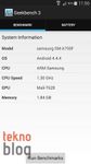 Samsung Galaxy A7’nin Türkiye’de satılan versiyonunda kullanılan 20 nm üretim süreci belirli bir avantaj sağlıyor. Ayrıca farklı bir GPU’nun kullanılmasının da avantajlar arasında dile getirilmesi yanlış olmaz. AnTuTu Benchmark testinde Android 4.4.4 KitKat yüklü, Snapdragon 615 işlemcili Galaxy A7’nin 31000 seviyesinde bir puan elde ettiğini görüyoruz. Halbuki elimizdeki Exynos 5 Octa işlemcili Galaxy A7 gerçekleştirdiğimiz AnTuTu Benchmark testinden 44758 puan elde etti. GeekBench 3 testinde de bu telefonu geçen yılın amiral gemisi, Snapdragon 801 işlemcili Galaxy S5’ten biraz daha iyi sonuçlar elde ettiğini görüyoruz.