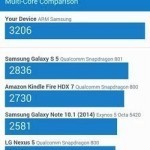 Samsung Galaxy A7’nin Türkiye’de satılan versiyonunda kullanılan 20 nm üretim süreci belirli bir avantaj sağlıyor. Ayrıca farklı bir GPU’nun kullanılmasının da avantajlar arasında dile getirilmesi yanlış olmaz. AnTuTu Benchmark testinde Android 4.4.4 KitKat yüklü, Snapdragon 615 işlemcili Galaxy A7’nin 31000 seviyesinde bir puan elde ettiğini görüyoruz. Halbuki elimizdeki Exynos 5 Octa işlemcili Galaxy A7 gerçekleştirdiğimiz AnTuTu Benchmark testinden 44758 puan elde etti. GeekBench 3 testinde de bu telefonu geçen yılın amiral gemisi, Snapdragon 801 işlemcili Galaxy S5’ten biraz daha iyi sonuçlar elde ettiğini görüyoruz.