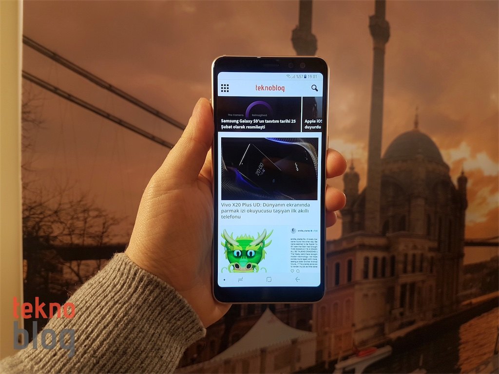 Galaxy A8, ele rahatlıkla oturuyor. Parmakların akıllı telefonun uzun ekranında gezinmesi bir sorun teşkil etmiyor. Hatta günümüz standartları çerçevesinde Galaxy A8, ele oturma biçimiyle biraz küçük bir telefon olduğu hissiyatını bile oluşturabiliyor. Galaxy A8+ ise 6 inçlik ekranıyla Galaxy S8 ve S8+’a çok daha yakın bir cihaz profili çiziyor. Daha da büyük ekranın etkisiyle parmağın ekran üzerinde gezinmesi ve tek elle menüde dolaşmak biraz daha zorlu bir işe dönüşüyor.