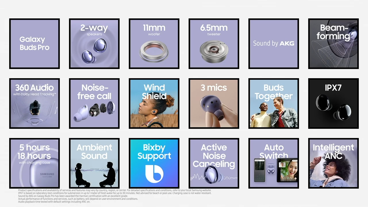 Samsung Galaxy Buds Live, aktif gürültü engelleme için yüksek ve düşük olmak üzere iki seviye sunuyor. Ortam sesi içinse dört farklı seviye mevcut. Böylelikle kullanıcılara dış dünyayla iletişim konusunda daha etkin bir kontrol imkanı sağlanıyor. Galaxy Buds Pro’da ses tespit özelliği de bulunuyor. Bu özellik kullanıcının konuşmaya başladığını algılıyor ve aktif gürültü engellemeden seçili ortam sesi moduna geçiş yapıyor. Kullanıcılar, Galaxy Buds Pro’nun normal işleyişe geri döneceği süreyi de belirleme imkanına sahip.