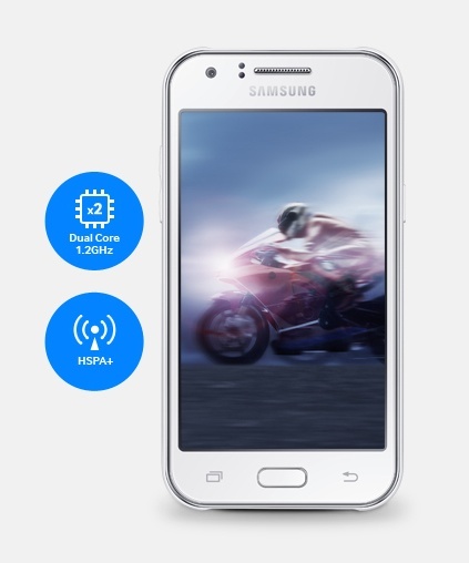 4.3 inç WVGA ekran, Ultra Güç Koruma modu, 5 megapiksel arka kamera, 1.2 GHz çift çekirdekli işlemci ve HSPA+ bağlantıyla birlikte gelen Samsung Galaxy J1’de fotoğraf özellikleri ön plana çıkarılmış. Palm Selfie adını taşıyan özellik sayesinde Galaxy J1 sahiplerinin sadece küçük bir el hareketiyle selfie çekmesi mümkün oluyor. Tap to Take Pics adını taşıyan özellik ise fotoğraf çekmek için akıllı telefonun deklanşör butonuna basma zorunluluğunu ortadan kaldırıyor ve ekranın herhangi bir noktasına dokunulunca anın yakalanmasını sağlıyor.