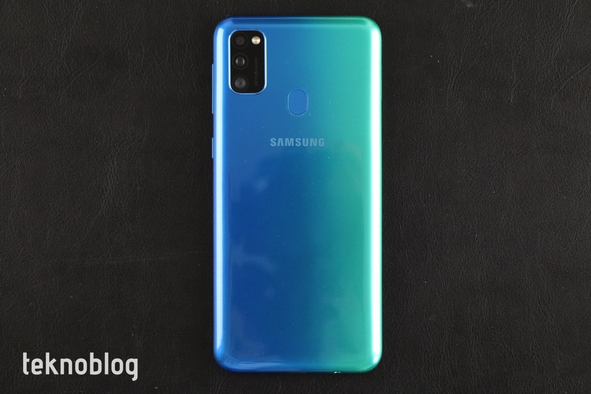 Galaxy M30s’in 6.4 inç Full HD+ Super AMOLED ekranı gayet parlak görünüyor. Ekranın etrafını saran çerçeve de çok geniş sayılmaz. Bu sayede telefonu tek elle kavramakta ve kullanmakta fazla sıkıntı yaşamayız gibi görünüyor. Galaxy M serisinin havasını yansıtan bu telefonun gövdesi plastikten yapılmış. Bize gelen mavi renkli modelde yeşile doğru geçişin yapıldığını görüyoruz. Bu gradyan doku biraz sıradan gibi görünüyor.