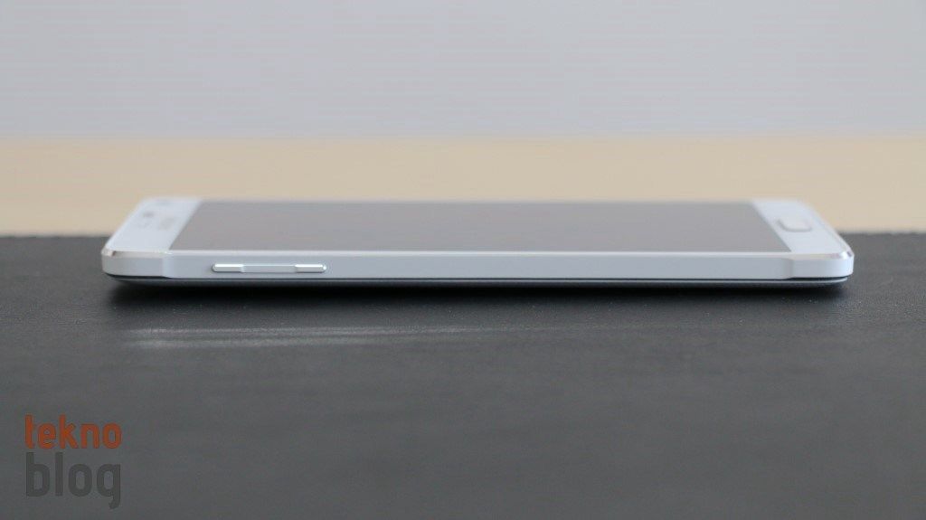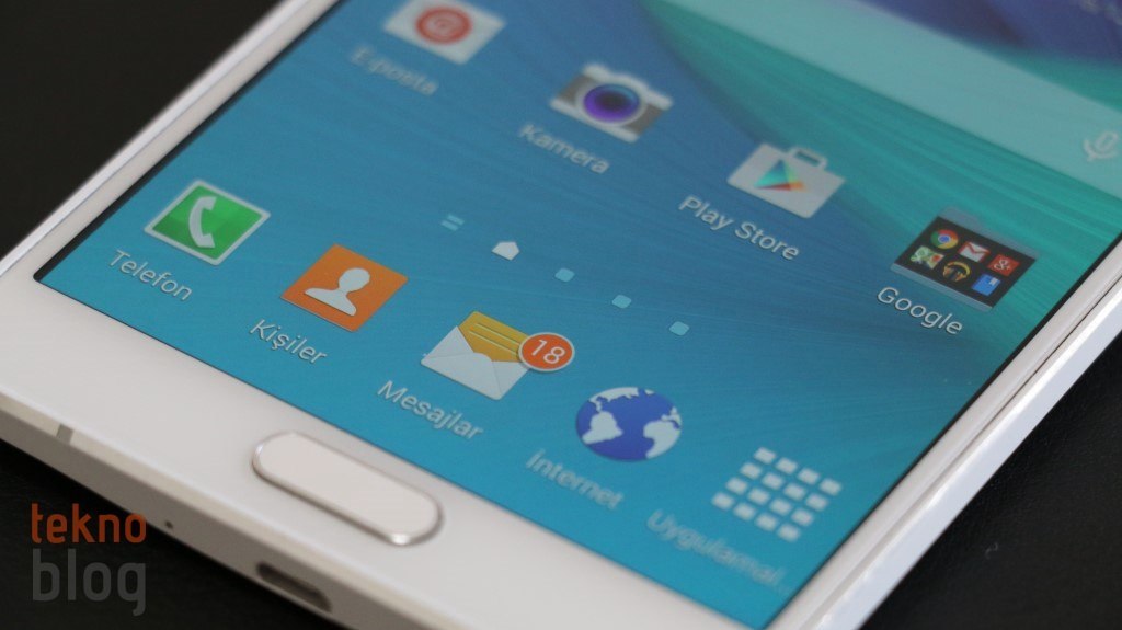 Ekranın altında fiziksel ana ekran tuşu bulunuyor. Bu tuşa parmak izi tarayıcısı da entegre edilmiş, sağında ve solunda da sırasıyla geri ve çoklu görev tuşları yer alıyor. Quad HD ekranın üst tarafında Samsung logosu, ahize hoparlörü, sensörler ve 3.7 megapiksel çözünürlüklü ön kamera dikkat çekiyor. Bunlara ek olarak sol üst köşede de bildirim lambasını görüyoruz.