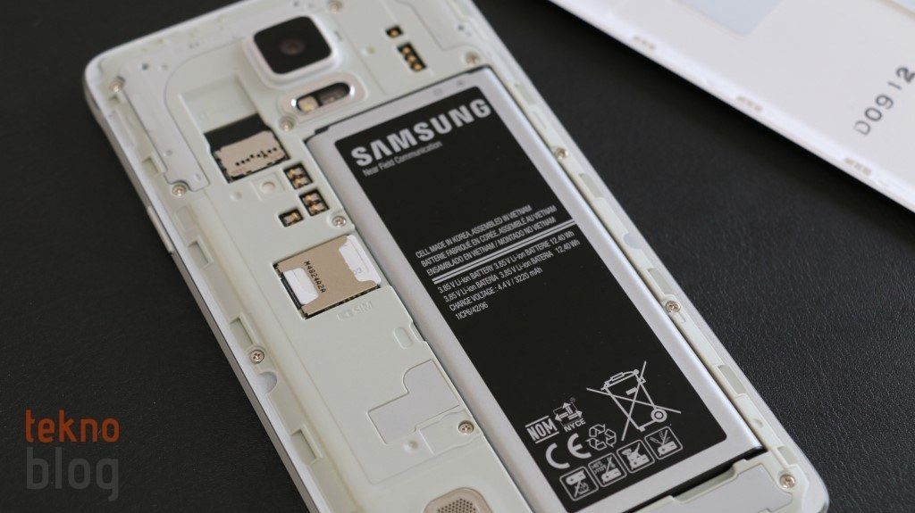 Samsung Galaxy Note 3’te yer alan 3200 mAh kapasiteli bataryasına Galaxy Note 4’te sadece 20 mAh’lik bir ekleme yapılıyor. 5.7 inç ekranın çözünürlüğü Quad HD seviyesine çıkarılmış olsa da, genel pil performansı Galaxy Note 3’ün çok aşağısına inmiyor. Galaxy Note 4 ortalama 1.5-2 günlük bir kullanım imkanı sunuyor. Burada bir parantez açalım ve Galaxy Note 4’ü çoğunlukla Gear S ile Bluetooth 4.0 LE aracılığıyla eşleştirilmiş şekilde kullandığımızı belirtelim.