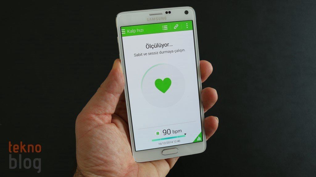 Donanım ve Performans bölümünü bitirirken Samsung Galaxy Note 4’ün birçok sensöre sahip olduğunu belirtmiştik. Bu sensörler S Health uygulaması sayesinde anlam kazanıyor. Bütün sağlık ve zindelik kaydınızı tutabileceğiniz S Health uygulaması sayesinde atılan adım sayısı, yakılan kalori miktarı, kandaki oksijen seviyesi, nabız gibi bilgilere sürekli ulaşabilirsiniz. Spor yaparken de Samsung Galaxy Note 4 yanınızdan ayırmamanız gereken bir akıllı telefon.
