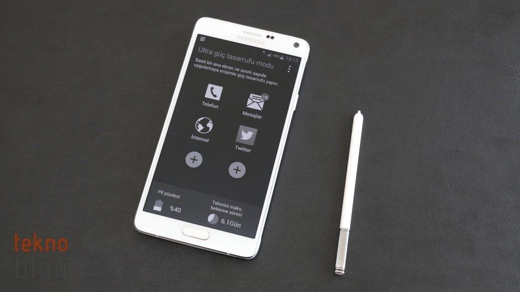 Samsung Galaxy Note 4 ile birlikte çeşitli güç tasarruf araçları sunuluyor. Arka plan verilerini kısıtlama, performans düşürme gibi artık alıştığımız araçların yanında ekranın siyah-beyaza dönüştürülmesi de bir seçenek olarak eklenmiş. Eğer Note 4’ünüzün pili azaldıysa, bu seçeneği açarak telefonunuzu siyah-beyaz ekranla kullanabilirsiniz. Böylelikle ekranın pil tüketimini fazla yapmasında en çok katkıda bulunan unsurlardan biri olan renklerin üstünü çizmiş olacaksınız.