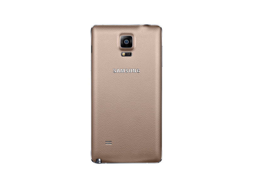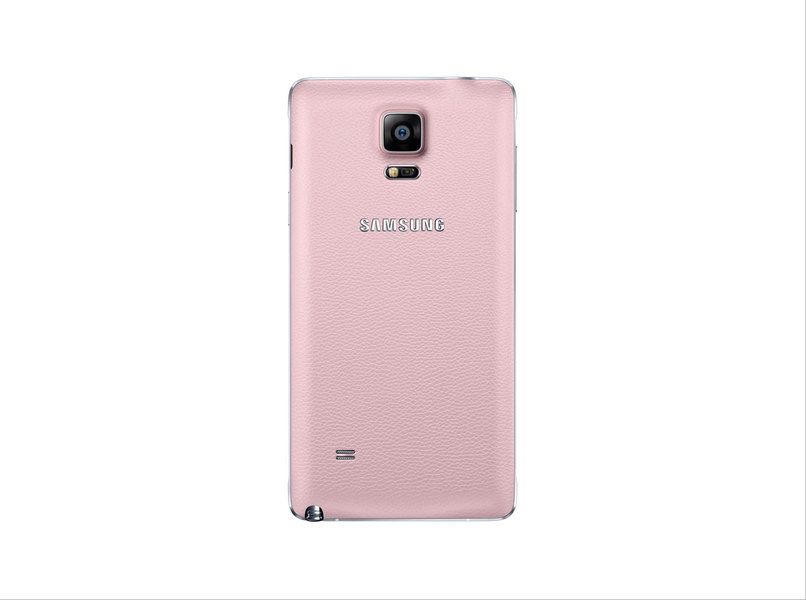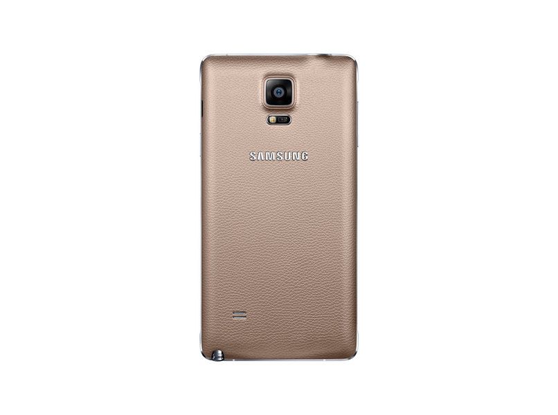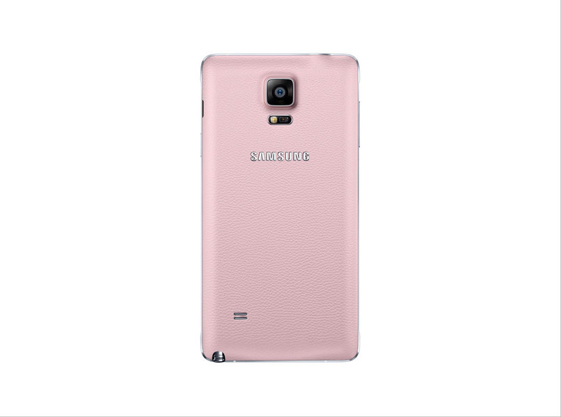 Note 4’te dikkat çeken en önemli yeniliklerden bir tanesi kenarlarını çevreleyen metal şerit oluyor, bu açıdan yeni tanıtılmış olan Galaxy Alpha ile benzerlik gösteriyor. Suni deri arka kapak varlığını korumaya devam ediyor, ancak yeni Note’da bu kapak daha iyi ve kaliteli görünüyor. Telefonun siyah, beyaz, pembe ve açık kahverengi renk seçenekleri bulunacak.