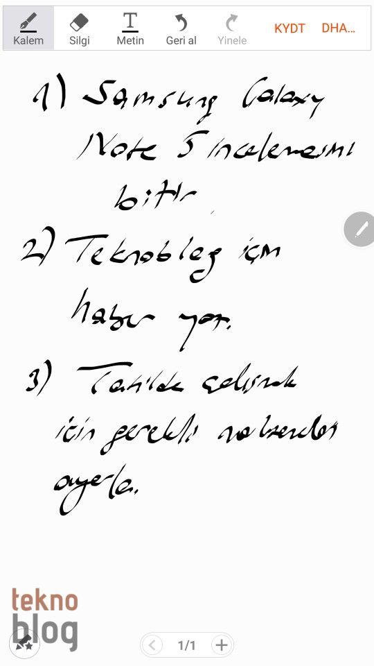 S Pen’in bir başka yeniliği ekran kapalıyken de hemen hızlı not alma imkanı sunması. Ekran kapalı notu olarak adlandırılan bu özellik açık olduğu takdirde, ekran kapalı olduğu hâlde S Pen’i yuvasından çıkardığınızda siyah renkli ekrana hızlıca not alabilirsiniz. Bu özellik sayesinde Note 5 kağıt-kalem ikilisinin yerine biraz daha yerleşme imkanı elde ediyor. Özellikle telefon numarası veya e-posta adresi gibi bilgileri kaydetmek için bu özellik epey kullanışlı gibi görünüyor.
