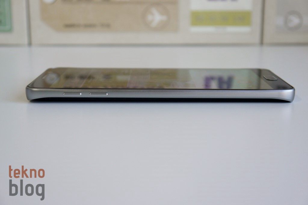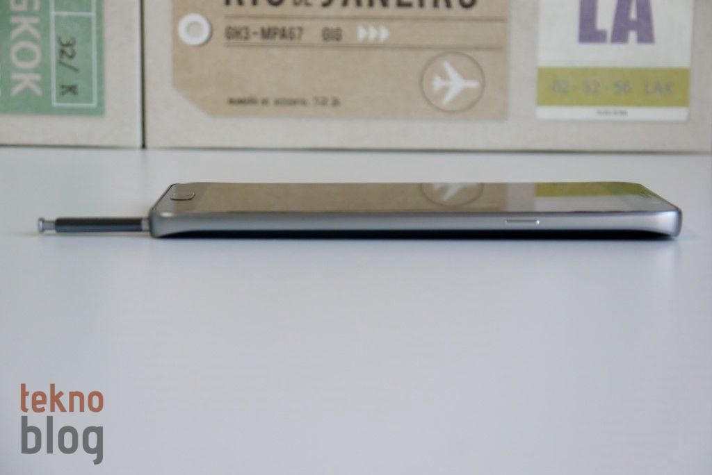 Kenarlarda saydığımız bütün butonlar, girişler, çıkışlar Galaxy Note 5’in kenarlarında boydan boya uzanan metal çerçevesi üzerine oturuyor. İnce işçilikle oldukça şık hâle getirilmiş bu metal çerçevenin ön ve arka panele geçişlerinde gördüğümüz yivlenmiş hatlar da çiziklere karşı epey dayanıklı görünüyor. Tabii ki, Galaxy Note 5’i kazara bir yerlere çarparsanız, hafif aşınmalar görebilirsiniz, bunu da belirtelim.