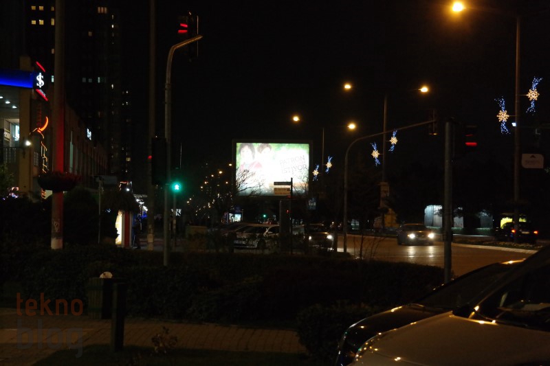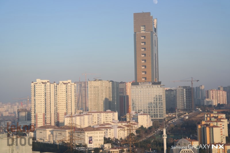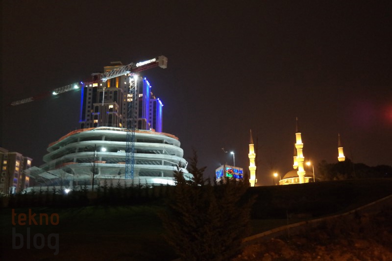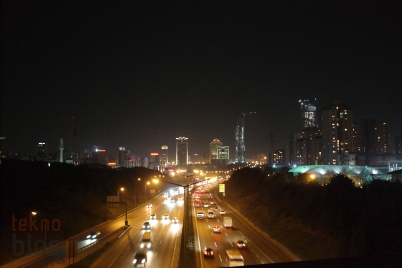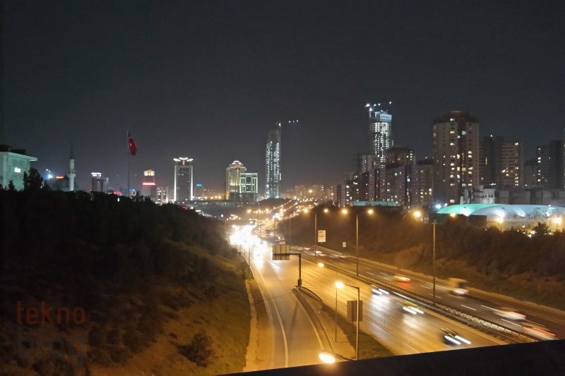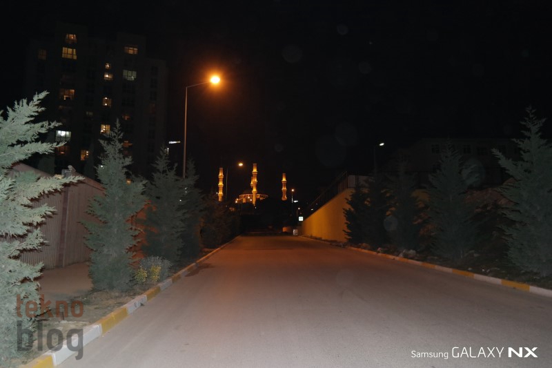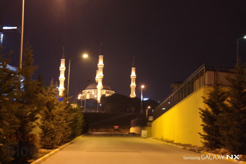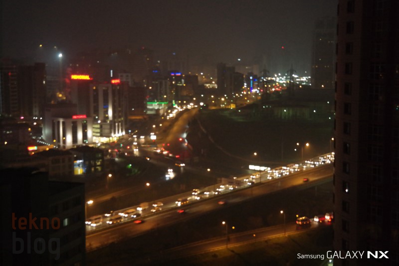 Öncelikle gece çekimleriyle başlayalım. Akıllı telefon kamera testlerinde de gece çekim performansına, özellikle gece çekilen manzara fotoğraflarına büyük önem veririz. Samsung Galaxy NX ile otomatik modda ve flaş kapalıyken yaptığımız gece çekimlerinde pozlamanın normale göre biraz daha fazla olduğunu gördük. Bu da yüksek şiddetli ışık yayan nesnelerde aşırı parlaklığa yol açıyor. Böyle bir durumda manuel moda geçiş yapıp elle ayar yapmak, diyafram açıklığını kısmak daha iyi sonuç verebilir. Otomatik modda çekilen gece manzaralarında yakınlaştırma yapıldığında hafif de olsa gürültü gözleniyor, ancak elle ayar sonrasında yaptığımız çekimlerde bu etkinin de ortadan kalktığını gözlemledik.