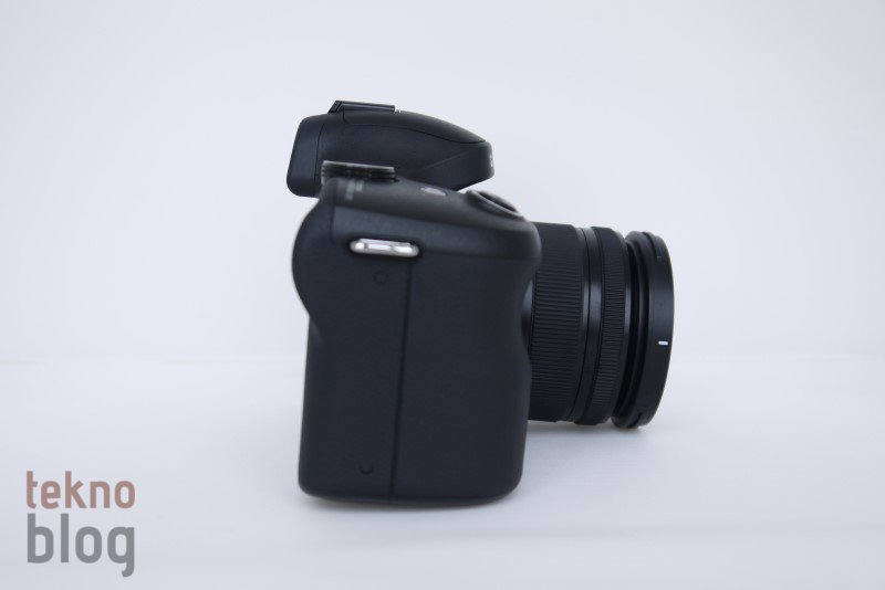 Kabza ön bölümde epey bir çıkıntı yapıyor. Bunun üstünde hafif aşağı doğru eğim verilmiş ve bu sayede daha rahat kullanılmasına imkan sağlanan deklanşör butonu yer alıyor. Deklanşör butonunun hemen gerisinde de anında video çekimine başlamaya izin veren kırmızı renkli video kayıt tuşu bulunuyor. Bunlardan başka üst bölümde mod geçişini fiziksel kontrol etmeyi sağlayan halka, güç butonu, flaş ve hot-shoe yer alıyor. Ayrıca dahili flaşın hemen yanında da flaş tuşunu görüyoruz.