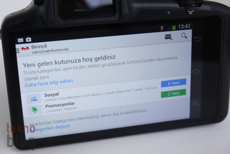 Samsung Galaxy NX’te Android 4.2.2 Jelly Bean yüklü geliyor ve bunun üstünde TouchWiz kullanıcı arayüzü de bulunuyor. Android işletim sistemi sayesinde Galaxy NX’in verimliliği daha da artıyor. Özellikle çekilen fotoğraf ve videoların paylaşımı ve saklanması noktasında. Ayrıca normalde bir Samsung Galaxy akıllı telefon ve tabletinde yaşanan deneyim aynı şekilde bir fotoğraf makinesinde de yaşanabiliyor. Doğrusunu söylemek gerekirse, Galaxy NX gibi bir fotoğraf makinesinde Android’i görmek garip geliyor. Ancak bu garipliği olumsuz değil, olumlu olarak algılayın.