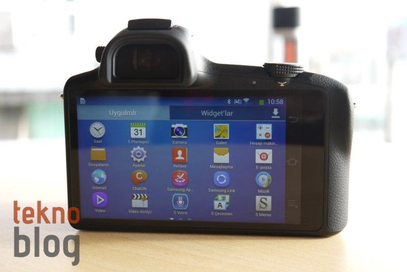 Samsung Galaxy NX’in mobil tarafında işler akıllı telefon ve tabletlerden bildiğiniz gibi. Kamera uygulamasından çıkarak TouchWiz ile giydirilmiş Android arayüzünü görüntüleyebilir ve Galaxy NX’i bir akıllı telefon gibi kullanabilirsiniz. İnternette gezinme, e-postaları alma gibi standart işlevleri de sunan bu fotoğraf makinesi aynı zamanda çekilen fotoğraf ve videoları Twitter, Facebook, Instagram gibi ortamlarda kendi uygulamalarını kullanarak paylaşma fırsatı sunuyor. Google Play Store’dan da dilediğiniz uygulamayı ve oyunu yükleyebilirsiniz.