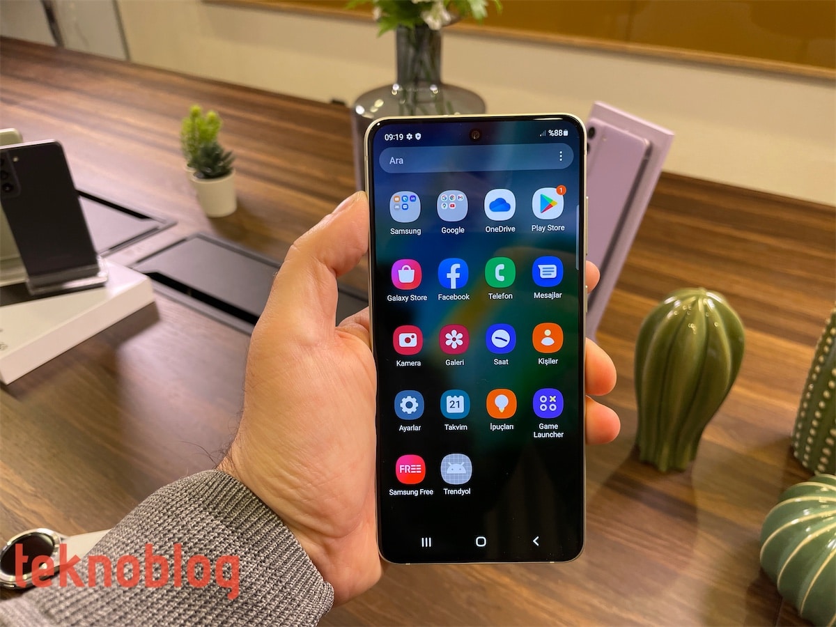 Kullanıcılar ana ekranın sayfaları arasında gezinirken bir kalabalıkla karşılaşmıyor. Ön yüklü olarak sunulan uygulama ve araçların büyük kısmı gruplandırılmış biçimde gösteriliyor. Bu da S21 FE’nin menüsünün kalabalık görünmemesini sağlıyor. Telefonda Google ve Samsung’un uygulamaları kullanıcıları hazır şekilde bekliyor. Bunlara ek olarak, OneDrive ve Facebook da S21 FE’de yüklü şekilde gelen uygulamalar arasında bulunuyor.