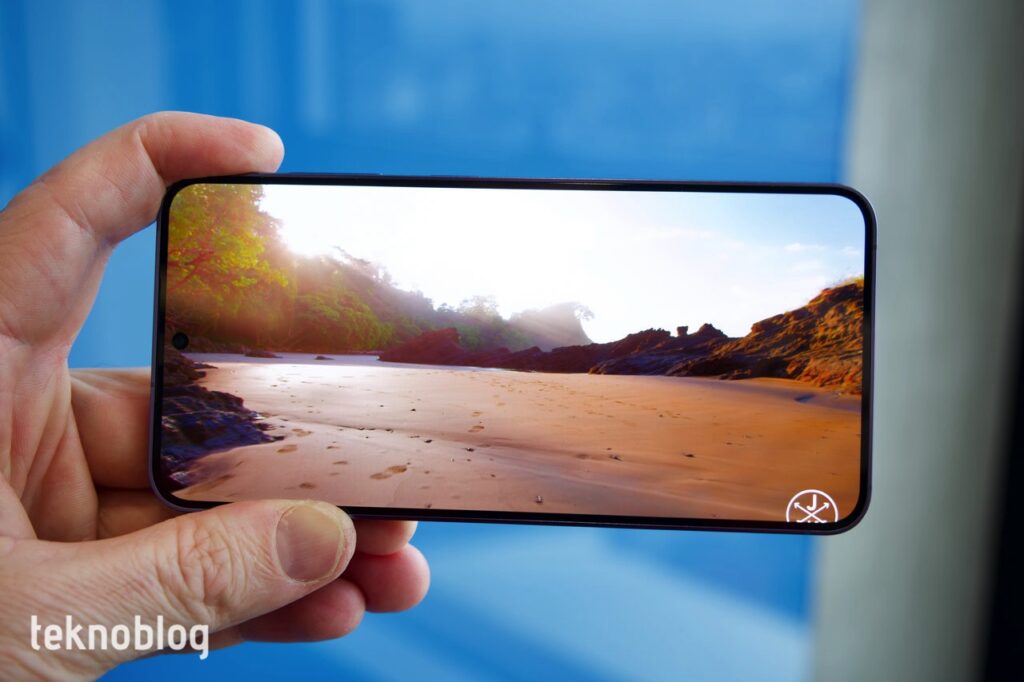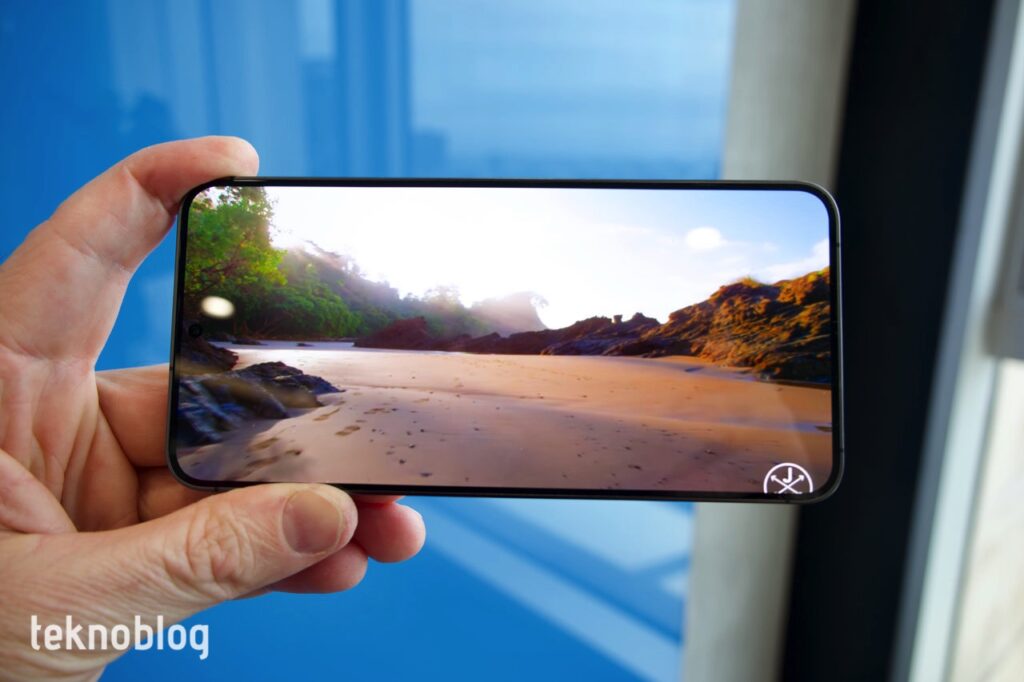 Galaxy S24’te 6.2 inç, 2340 x 1080 piksel Full HD+ çözünürlüklü Dinamik AMOLED 2X ekran var. Bu da 418 ppi piksel yoğunluğuna karşılık geliyor. Galaxy S24+’ın ekran büyüklüğü 6.7 inç seviyesine çıkarken çözünürlük ise 3120 x 1440 piksel, yani QHD+ seviyesine çıkıyor. Bu da piksel yoğunluğunu 516 ppi seviyesine çıkarıyor. S24+’ın varsayılan ekran çözünürlüğü Full HD+ olarak geliyor, ancak isterseniz daha yüksek ayar ile daha fazla keskinlik ve netlik elde edebilirsiniz. Her iki modelde de 120 Hz’e varan adaptif yeileme hızı desteği var. 2600 nit seviyesine varan maksimum parlaklık ise içte ve dışta daha iyi bir görüş ve kullanım sunacaktır. Gerçekten de, iki telefonda da açtığımız HDR YouTube videosu büyük bir etkileyicilikle gösteriliyor. One UI 6.1 kullanıcı arayüzünün unsurları da gayet hoş görünüyor.