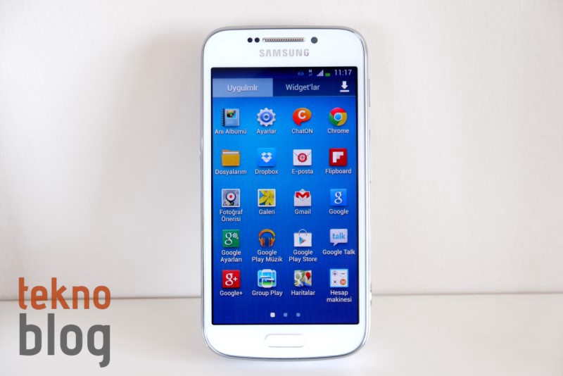 Telefonun ana ekranına çeşitli bileşenler, kısayollar veya uygulama klasörleri ekleyebilirsiniz. Uygulama menüsüne baktığımızda da Samsung Hub, Samsung Link, Samsung Sinema, S Çevirmen, S Memo, S Planlayıcı, ChatON gibi çeşitli Samsung uygulamalarının yüklü olduğunu görüyoruz. Bunun yanı sıra Google’ın Gmail, Google+, Hangouts, Chrome gibi uygulamaları da telefonda önceden yüklü geliyor. Çoğu telefonda Facebook ve Twitter uygulamalarını önceden yüklü olarak görüyoruz, ancak elimizdeki test ürünlerinde bu uygulamaları sonradan yüklememiz gerekti. Google Play Store’dan binlerce ücretli veya ücretsiz uygulamayı indirebileceğiniz gibi dileyenler için Samsung Apps’te de ilgi çekici uygulamalar bulunuyor.