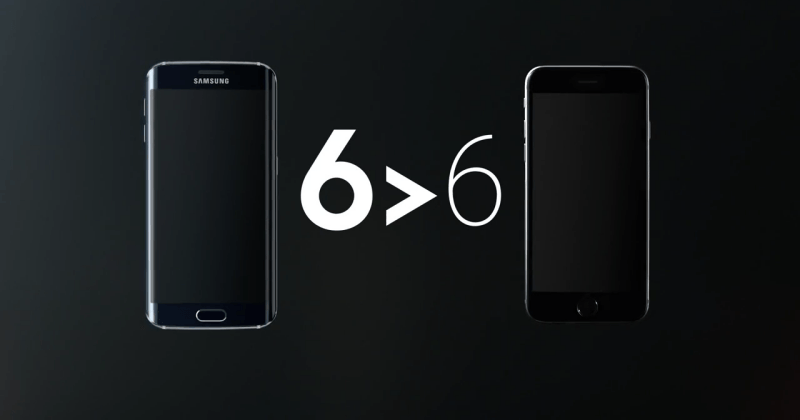 Akıllı telefonları için yayınladığı reklam filmlerinde Apple ile uğraşma gibi bir geleneğe sahip olan Samsung, yeni amiral gemisi telefonlarından Galaxy S6 edge için hazırladığı reklamlarda da sürdürüyor. Galaxy S6 edge ile iPhone 6’nın karşılaştırıldığı reklamlarından birinde 6’nın 6’dan daha büyük olduğu mesajı verilirken, Galaxy S6 edge’in kablosuz şarj özelliğinin iPhone’da bulunmadığına dikkat çekiliyor.