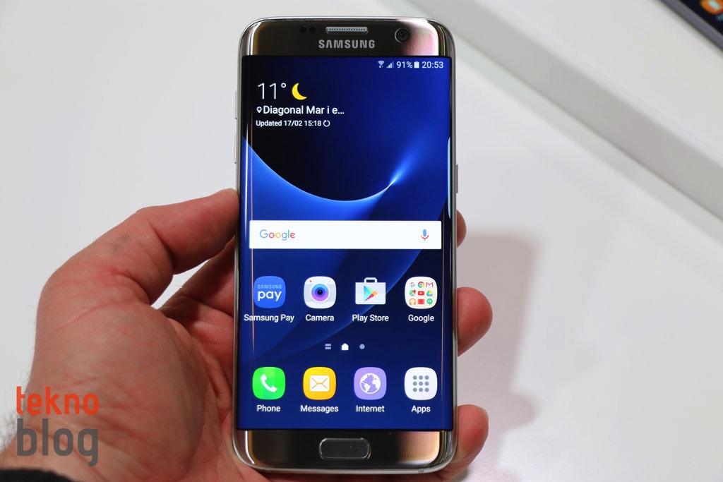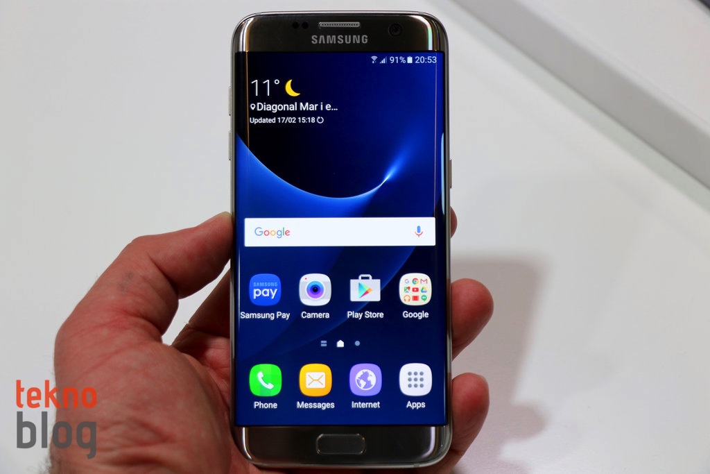 Galaxy S7 edge ise bu sefer kardeş telefondan hatırı sayılır oranda daha büyük boyutlu bir ekranla geldi. Böylelikle Samsung bir açıdan iPhone 6s ve iPhone 6s Plus arasındaki ilişkiye benzer bir ilişki oluşturmuş oldu. Eğer daha büyük ekranlı bir Galaxy S7 isterseniz, o hâlde tercihiniz Galaxy S7 edge olmalı. Üstelik boyut açısından da Galaxy S7 edge epey avantajlı görünüyor. Samsung ekranın etrafını saran çerçeveyi epey daraltmış ki, telefonu tek elle bile rahatlıkla kullanmak mümkün oluyor. Galaxy S7 edge de görünüş açısından geçen yılın telefonundan çok farklı görünmüyor. Ancak ön taraftaki kavise arka taraf da daha fazla uyum sağlıyor. 5.5 inç ekran, 2560 x 1440 piksel çözünürlüğe ve Super AMOLED teknolojisine sahip. Bu ekran teknolojisinin de katkılarıyla, Galaxy S7 ve S7 edge sürekli-açık ekran özelliğini de sunuyor. Böylelikle ekran uyku durumundayken bile üstünde saat, tarih gibi bilgileri ve Samsung’un sunacağı çeşitli görsel bileşenleri görmek mümkün olacak.