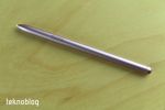 Tabletin arka yüzündeki tasarım da Samsung’un yatay tutuşa öncelik verdiğini gösteriyor. Arkada iki adet kamera ve flaş yan yana sıralanmış. Bu üçlünün uzantısı biçiminde yatay bir şerit uzanıyor ve bu, Samsung logosuyla tamamlanıyor. Söz konusu yatay şerit kutudan çıkan S Pen kapasitif ekran kaleminin tutturulduğu, manyetik kuvvet barındıran bir yuva. Kalemin muhafazası ve şarjı için kullanılıyor. Öte yandan kısa kenarlara doğru yerleştirilmiş anten çizgileri de dikkat çekiyor.