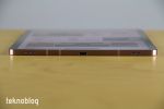 Tabletin dik kenarlarına baktığımızda ise, iki kısa kenara yerleştirilmiş ikişer adet hoparlör görüyoruz. Bir kenarda mikrofon, diğer kenarda da USB-C portu bulunuyor. Alt kenarda ise tabletin klavyeli kılıfla bağlantısını sağlayan konnektör ve fiziksel olarak tutunmasına yardımcı olan iki küçük delik mevcut.