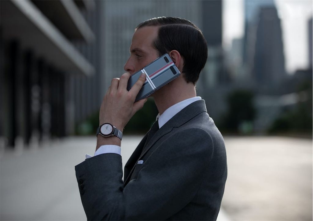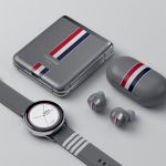 Özel tasarım Galaxy Z Flip’te gri renkli telefonun üzerinde Thom Browne’un imzası olarak tanımlanabilecek kırmızı, beyaz ve lacivert renkli şerit yatay biçimde işlenmiş. Samsung, Galaxy Z Flip’in yanı sıra Galaxy Buds Plus ve Galaxy Watch Active için de Thom Browne ile birlikte özel versiyonlar hazırladı.