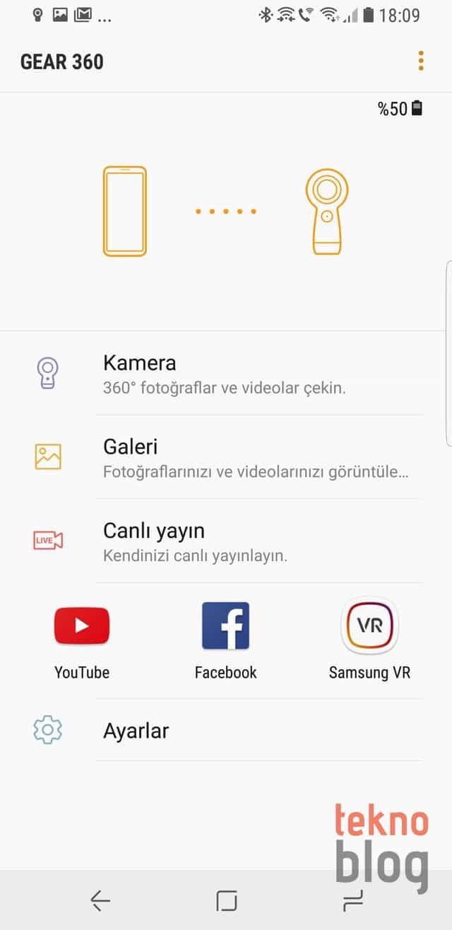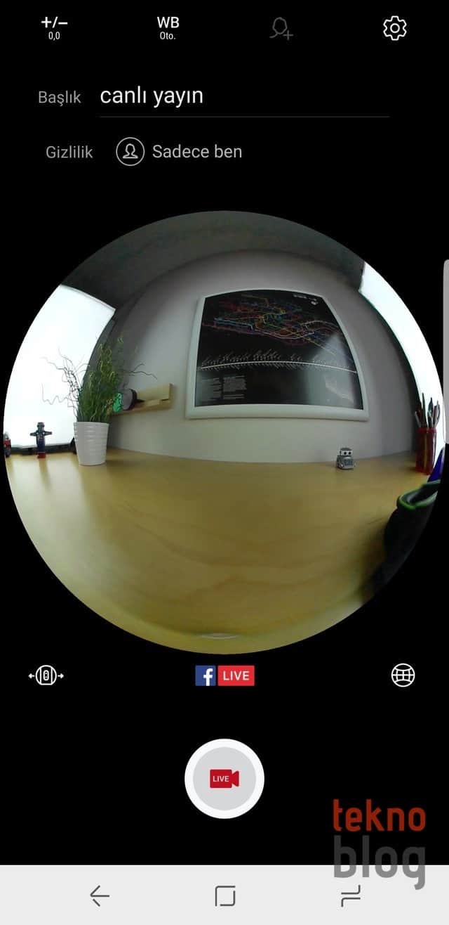 Gear 360 uygulaması yardımıyla akıllı telefonun ekranını bir vizör gibi kullanabilir, kamera veya kameraların görüntüsünü anında akıllı telefon üzerinden görebilirsiniz. Çektiğiniz fotoğraf veya videoların ön izlemesini akıllı telefondan yapabilir, dilediklerinizi telefona aktarabilirsiniz. Ayrıca uygulama sayesinde YouTube veya Facebook üzerinde anında canlı yayına geçebilirsiniz. Ayarlara baktığımızda Facebook’ta canlı yayın özelliğinin sadece kullanıcı hesapları için çalıştığı görülüyor. Umarız Facebook sayfaları için de canlı yayın imkanı gelir.