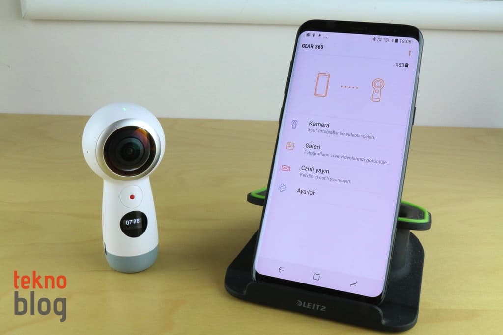 Tıpkı bir GoPro kamera gibi, Gear 360’ı da üstünde bulunan küçük LED ekran üstünden kontrol etmek, video ve fotoğraf çekim modları arasında geçişi görmek, basit ayarları yönetmek mümkün oluyor. Ön ve arka kamera arasındaki geçişi de kolaylıkla yapabilirsiniz, ancak çekime başlamadan önce kameranın ön ve arka lenslerinin hangileri olduğunu belirlemelisiniz. Aksi takdirde tek lensle yaptığınız çekimlerde yanlış lensle çekim yaptığınızı görüp hayal kırıklığına uğrayabilirsiniz. Uygun çekim modunu belirleyip, daha sonra ergonomik konuma yerleştirilmiş çekim tuşuna basarak fotoğraf ya da video çekimine başlayabilirsiniz. Gear 360 mobil uygulamasını kullanarak kamerayı bir Android telefona veya iPhone’a bağlamak imkanları genişletiyor, daha rahat kullanım sağlıyor. NFC desteği olmadığı için Android telefonlarla bağlantı süreci biraz uzuyor. Yine de, bir dakika içinde ister iPhone ile, ister Android telefonla bağlantı kurmak mümkün oluyor.
