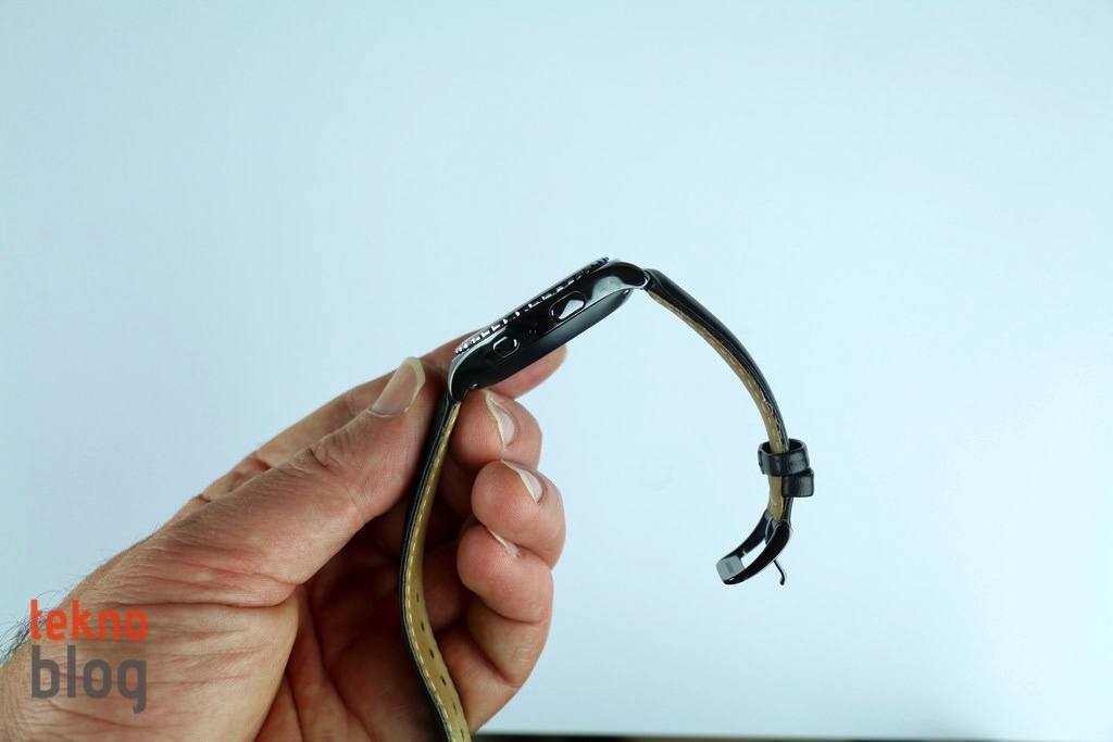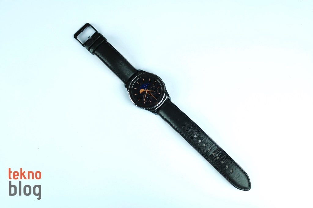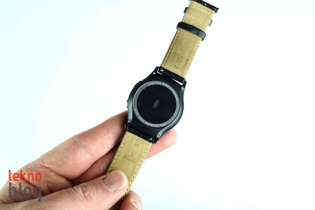 Gear S2 classic’in paslanmaz çelik gövdesi parlak yüzeyiyle gayet şık ve çekici görünüyor. Gear S2’nin standart modelinde yer alan özel monte yuvalarının aksine, classic modelinde klasik saatlerdekine benzer şekilde kolay şekilde çıkarılabilir pinler hem altta hem de üstte yer alıyor. Akıllı saat 20 mm’lik deri kayışla birlikte sunuluyor.