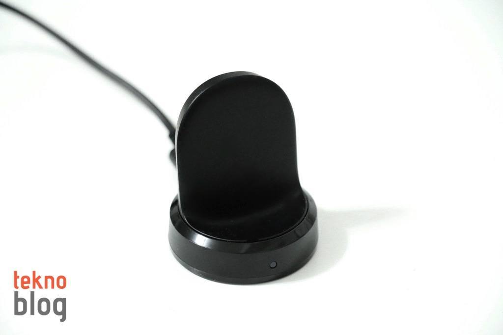 S2’de ivmeölçer, jiro, kalp hızı ölçer ve barometre gibi sensörler de bulunuyor. Öte yandan kablosuz şarj desteği mevcut ve kutusundan çıkan şarj istasyonuna yatay şekilde yerleştirilerek şarj ediliyor. Şarj edilirken ekranı açtığınızda kullanıcı arayüzünün 90 derece döndüğünü ve bu şekilde şarj edilirken de S2’yi kullanmanın mümkün olduğunun görüyoruz. Ayrıca bu hâliyle S2 güzel bir gece saati de olabilir.