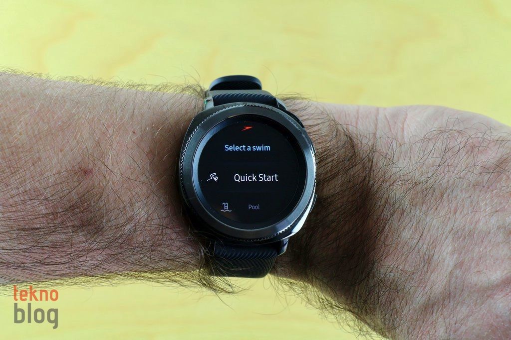 Gear Sport’un seleflerine göre en önemli yeniliklerinden bir tanesi suya dayanıklılık oluyor. Gear S3’te de IP68 sertifikası bulunuyordu, ancak Gear Sport’ta 5 atmosfer basınca kadar suya dayanıklılık var ki, bu da akıllı saati havuzda veya denizde yüzmek için fazlasıyla kullanışlı hâle getiriyor. Zaten Samsung da antrenman modları arasına yüzmeyi de eklemiş.