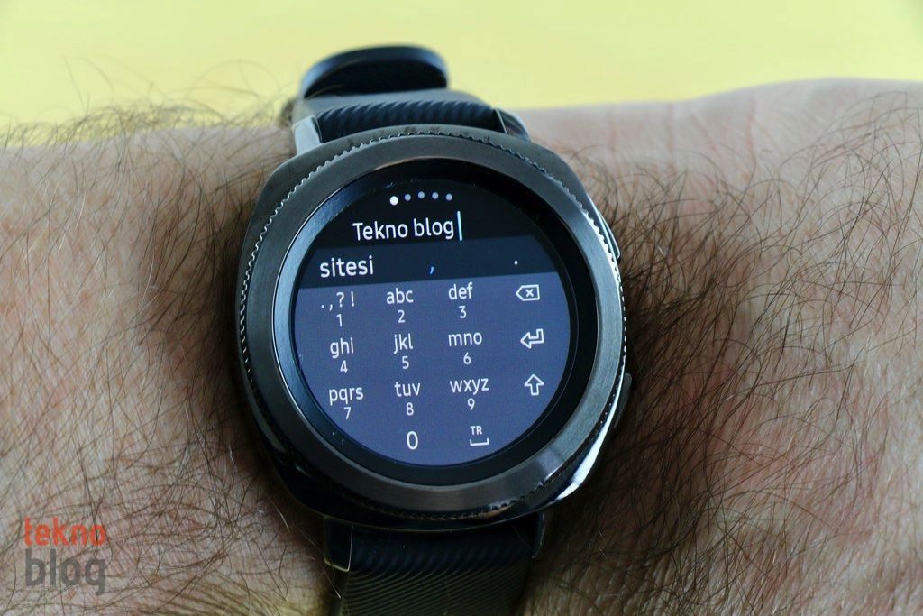 Samsung’un Tizen tabanlı giyilebilir ürün platformunun 3.0 versiyonu Gear Sport’ta yüklü olarak geliyor. Tizen kullanıcı arayüzünün dairesel ekranlara uygun hâle getirilmiş kullanıcı arayüzü, daha önce gördüğümüz Samsung Gear akıllı saatlerinden çok farklı bir görünüm sunmuyor. Samsung’un yüklü olarak gelen uygulamaları deneyimin merkezinde yer alıyor, ekranı saran bezel halka da gezintide önemli rol oynuyor. Böylelikle dokunmatik ekrana fazla temas etmeden, bezel halka ile bildirimleri görmek ya da komplikasyon olarak nitelendirebileceğimiz görsel bileşenlere kolaylıkla göz gezdirmek mümkün oluyor. Bildirimler içinden çeşitli aksiyonları gerçekleştirmek de mümkün oluyor. Örneğin gelen WhatsApp mesajlarına bildirimler üzerinden cevap verebilirsiniz. Bunun için eski cep telefonlarından bildiğimiz sayısal tuş takımı klavye kullanılıyor. Saat şeklini doğrudan Gear Sport üzerinden, sunulmuş çeşitli seçenekler içinden değiştirebileceğiniz gibi, Samsung’un Galaxy Apps uygulama mağazasından, bağlı akıllı telefon aracılığıyla da indirebileceğiniz birtakım saat şekilleri bulunuyor.
