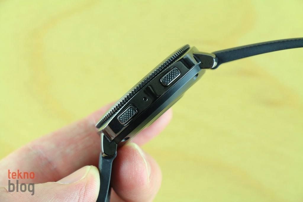 Samsung Gear Sport, 44.6 x 42.9 x 11.6 mm’lik boyutlarıyla selefi Gear S3 Frontier’e göre daha kompakt bir cihaz. Ancak 67 gr. ile ondan biraz daha ağır. Yine de, bu ağırlığı bileğimizde hiçbir şekilde hissetmediğimizi, Gear Sport’u diğer akıllı saatler gibi rahatlıkla kullandığımızı belirtmeliyiz.