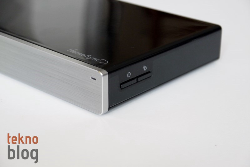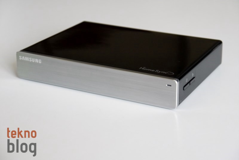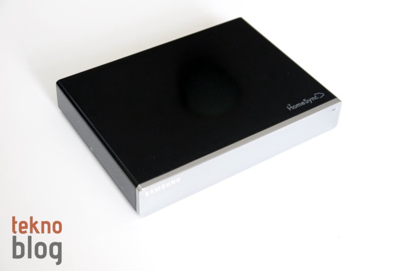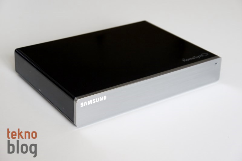 Samsung HomeSync, Apple TV’ye göre hatırı sayılır oranda büyük, görüntüsü daha çok bir kablosuz modemi andırıyor. Buna karşılık bir kablosuz modemden daha çekici durduğunu, oturma odalarının havasına uyum sağlayan bir tasarıma sahip olduğunu söylemek gerekiyor. Ön bölümün fırçalanmış alüminyum plakadan oluşturulması, üst ve kenarların da parlak plastikle kaplanmış olması cihaza gerçekten de bayalığın çok üstünde bir hava katıyor. Kısacası, Samsung HomeSync’in TV’nin yanında hiçbir şekilde sırıtmayacağını rahatlıkla söyleyebiliriz.