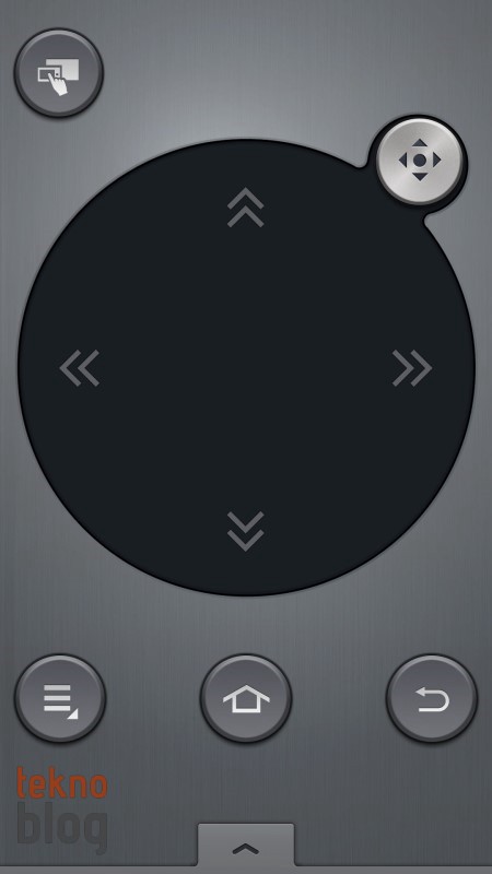 Samsung HomeSync’in kutusundan bir uzaktan kumanda çıkmıyor. Ancak Google Play Store’dan indirebileceğiniz Samsung HomeSync uygulamasını kullanarak bu set üstü cihazı uzaktan kumanda etmeniz mümkün. HomeSync uygulaması cihazı farklı yollarla kontrol etmenize olanak sağlıyor. Klasik bir uzaktan kumanda arayüzünü kullanarak, dokunmatik ekran üzerinen tıklamalarla kontrol işlemini gerçekleştirebileceğiniz gibi, akıllı telefonun ekranını bir touchpad gibi kullanarak da HomeSync’in kullanıcı arayüzünde gezinmeniz mümkün. Ayrıca ekran yansıtma özelliği sayesinde Samsung HomeSync’in kullanıcı arayüzünü Android telefonunuzun ekranına yansıtabilir, böylelikle kullanıcı arayüzünde sanki telefonunuzun arayüzünde geziniyormuş gibi gezinme işlemi gerçekleştirebilirsiniz.