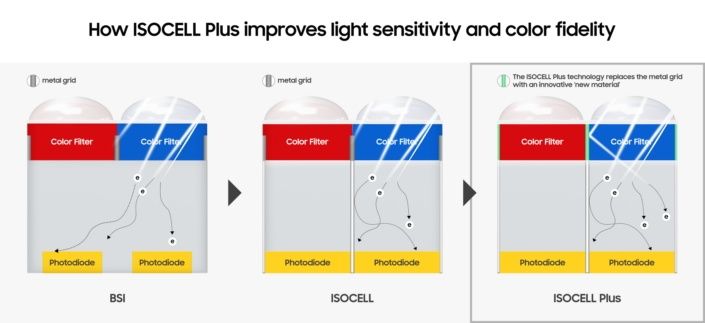 ISOCELL teknolojisi pikseller arasında fiziksel bariyerler oluşturarak çalışıyor. Böylelikle renk geçişleri engellenirken, her pikselin daha fazla ışık çekmesi sağlanıyor. Ancak bu bariyerler metal ızgaralardan oluştuğu için zaman zaman ışık ters biçimde çekilebiliyor veya yansıtılabiliyor. ISOCELL Plus’ta metal bariyerin yerini Fujifilm tarafından geliştirilen yeni bir materyal alıyor. Bu materyal sayesinde optik kayıp en düşük seviyeye çekiliyor.