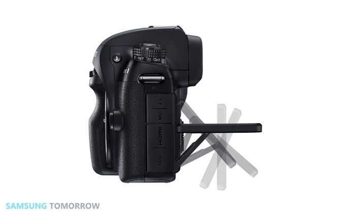 Geleneksel DSLR’lara ortalarındaki büyük kamburu kazandıran pentaprizmadan yoksun olsa da, Samsung NX1 onların boyutlarına olmasa da şekillerine yaklaşmaya çalışıyor. 550 gr. ağırlıklı gövde üstünde dahili flaş, OLED elektronik vizör ve döndürülebilir, böylelikle farklı pozisyonlarda rahat çekim sağlayan 3 inç Super AMOLED ekran bulunuyor. Samsung NX1’in tepesine bir LCD ekran ekleyerek DSLR tasarımından başka bir örnek daha alıyor. Aynasız kameralarda pek görmediğimiz bu özellik sayesinde diyafram açıklığı, deklanşör hızı, ISO ve beyaz dengesi gibi ayarları hızlı şekilde görmek mümkün oluyor.
