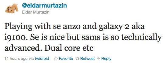 Cep telefonlarının James Bond’u olarak nitelendirilen Eldar Murtazin şimdi de başka bir telefonla ilgileniyor. Twitter hesabından yazdığına göre Eldar Murtazin’in elinde şimdi de Samsung GT-i9100, nam-ı diğer Galaxy 2 adında bir cihaz bulunuyor. Bu cihazın en büyük özelliği ise çift çekirdekli işlemci taşıması.