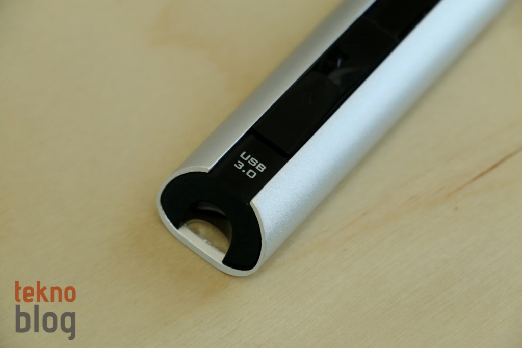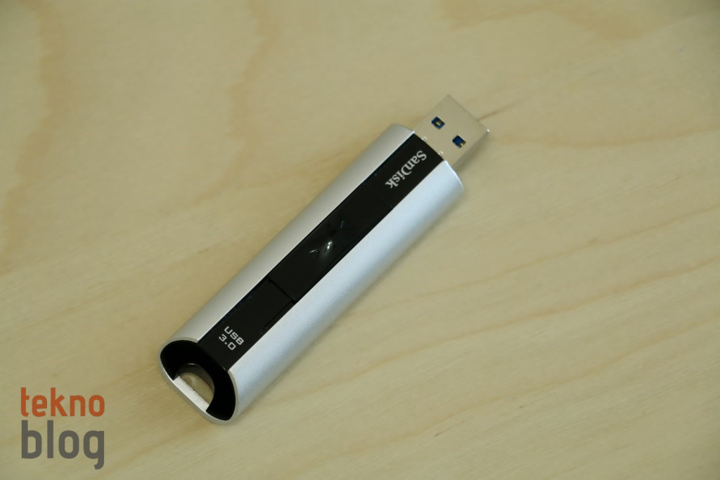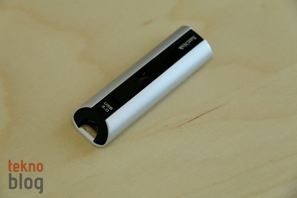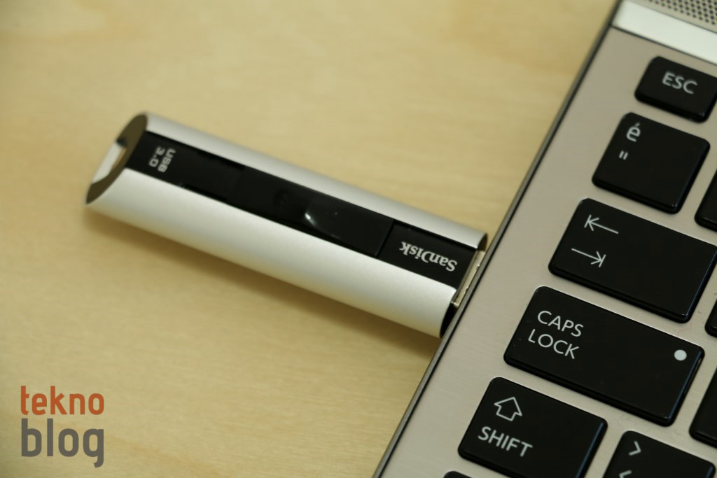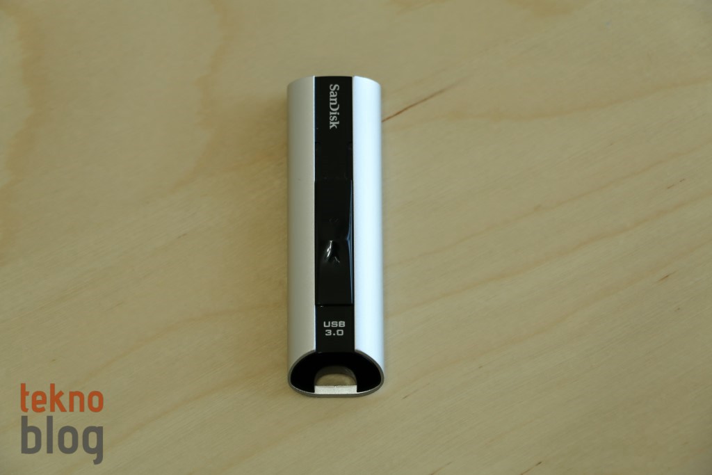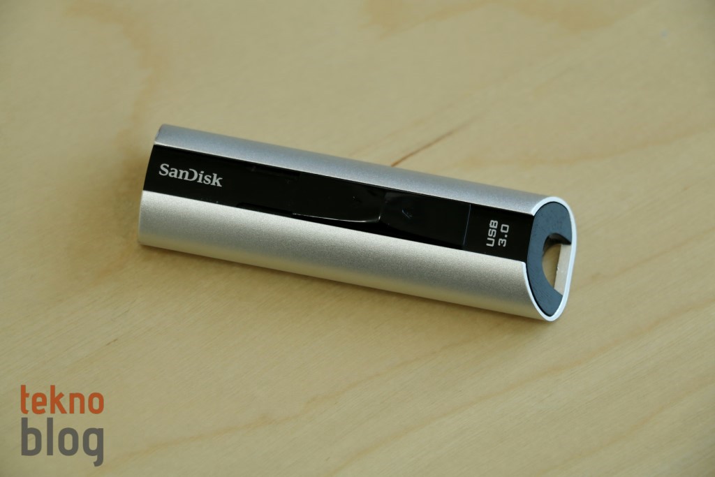 USB flaş belleklerde kullanılan ve USB ucunu örtmeye yarayan kapaklar pek kullanışlı sayılmaz. SanDisk, Extrem PRO’da bu kapağı kullanmak yerine özel bir mekanizmayı tercih etmiş. Yukarıda bahsettiğimiz siyah bant üzerindeki şeridi öne doğru hareket ettirdiğinizde USB ucu ortaya çıkıyor. Şeridi hafifçe bastırıp ters yöne hareket ettirdiğinizde de şerit tekrar yuvasına giriyor. Bu yapı sayesinde sadece kapağın kaybolması gibi bir dertten kurtulunmuyor, aynı zamanda USB belleğin cepte veya başka bir yerde taşınması sırasında boyuttan kazanılmış olunuyor.