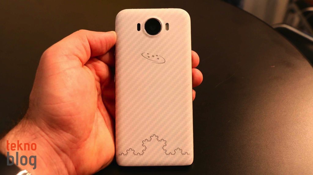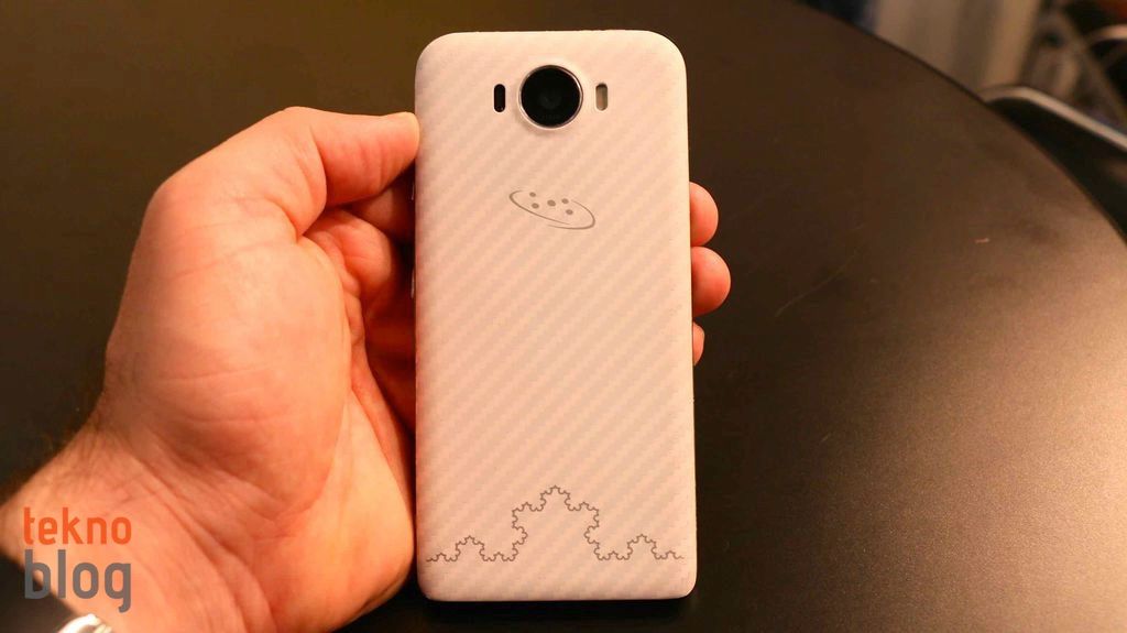 67 x 137 x 9.7 mm.’lik boyutlara sahip olan Saygus V2 belki biraz kaba görünüyor olabilir, ancak telefon yeteri kadar sağlam görünüyor ve kendine has bir çekiciliği olduğunu da söyleyebiliriz. 141 gr. ağırlığıyla bu telefon ne çok hafif ne de çok ağır. Telefonun kenarlarını çevreleyen metal şerit ve ana gövdeyi plastik kapak örtüyor. Bu kapağın üstünde, alt kenara doğru ilginç bir şekil göreceksiniz. Bu, süs olsun diye eklenmiş bir unsur değil, orası fraktal anten görevi görüyor, telefonun iyi bir kablosuz radyo bağlantı performansı sergilemesini sağlıyor. Bu da ilginç ve şaşırtıcı bir detay.