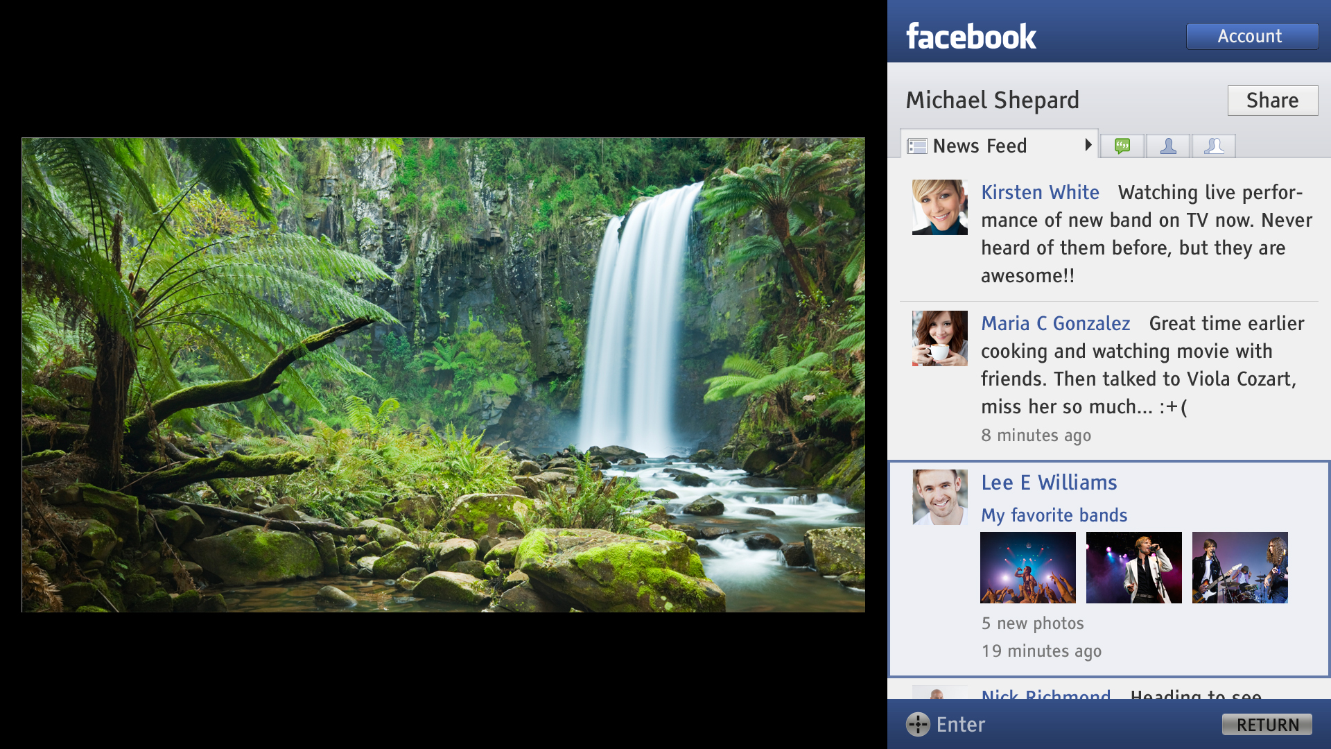 Yeni yazılımla birlikte 2011 model BRAVIA TV serilerine Facebook fotoğraf galerilerine, mesajlara, durum güncellemelerine ve paylaşılan bağlantılara internete bağlı HDTV’ler üzerinden erişim geliyor. Ayrıca bir Twitter bandı da ekranın altında Twitter’daki durum güncellemelerini kullanıcıya gösterecek. Bu arada Sony’nin şarkı tanıma teknolojisi Track ID’nin yardımıyla TV’de izlenen müzik kliplerinin bilgileri Twitter üzerinden paylaşılabilecek.