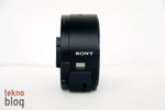 Sony QX10 kapalıyken lens bir kapakla örtülü şekilde duruyor. Tepesinde bulunan güç butonuna bastığınızda kapak açılıyor ve lens sistemi öne çıkıyor. Cihazın önden bakıldığında sağda kalan tarafında deklanşör tuşu ve optik zum ayar düğmeleri bulunuyor. Bunların karşısına gelen tarafta ise küçük bir LED ekran dikkat çekiyor. Bu ekranda microSD kartın takılı olup olmadığı veya pil durumuyla ilgili bilgiler gösteriliyor. Altta tripod bağlantısını sağlayan bir yuva dikkat çekiyor, bu da QX10’un bir tripoda sabitlenip, akıllı telefonla uzaktan kumanda edilerek fotoğraf veya video çekimi yapılabileceğini gösteriyor.