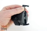 Bağlantı aksesuarının bir yüzünde yer alan iki kanadı açarak ve yuvasında ok işareti bulunan kanadı yukarı çekerek akıllı telefona monte edebilirsiniz. Kanadın akıllı telefonla temas eden iç yüzeyleri lastikle kaplı olduğu için akıllı telefonun herhangi bir zarar görmesi de söz konusu olmuyor.