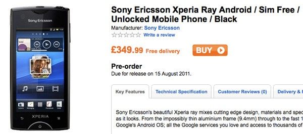 Sony Ericsson’un geçtiğimiz günlerde tanıttığı Xperia ray adlı Android akıllı telefonu Britanya’dakilerle buluşmaya hazırlanıyor. Bu cihaz Play.com çevrimiçi mağazası üzerinden ön siparişe sunuldu, 350 pound’luk (915 TL) fiyatla.