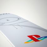 90’ların sonlarında piyasada olan ve özellikle orta yaşlara merdiven dayamış olanların hatırlayacağı video oyun konsolunun estetiğini yansıtan bu snowboard tahtasında PlayStation logosu, açık renkli çizgiler ve orijinal PSX görselinin bir çeşidi bulunuyor.