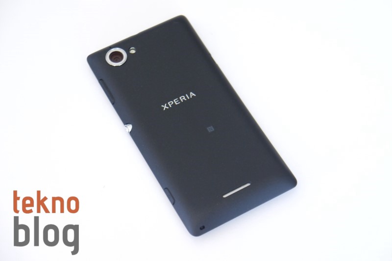 Xperia L’nin arka kapağı plastikten yapılmış; dış yüzeyi hafif pürüzlü ve ışık altında parlayan küçük granüller barındırıyor. Elimizde bulunan siyah renkli test ürünü için durum böyle, beyaz renkli model için de benzer durumun geçerli olup olmadığınıysa bilmiyoruz. 8 megapiksel kamera sol üst köşeye yerleştirilmiş, yanına da LED flaş eklenmiş. Ortada Xperia logosu bulunurken NFC etiketi de ihmal edilmemiş. Hoparlör ise alta doğru yerleştirilmiş.