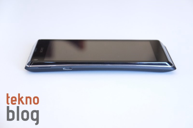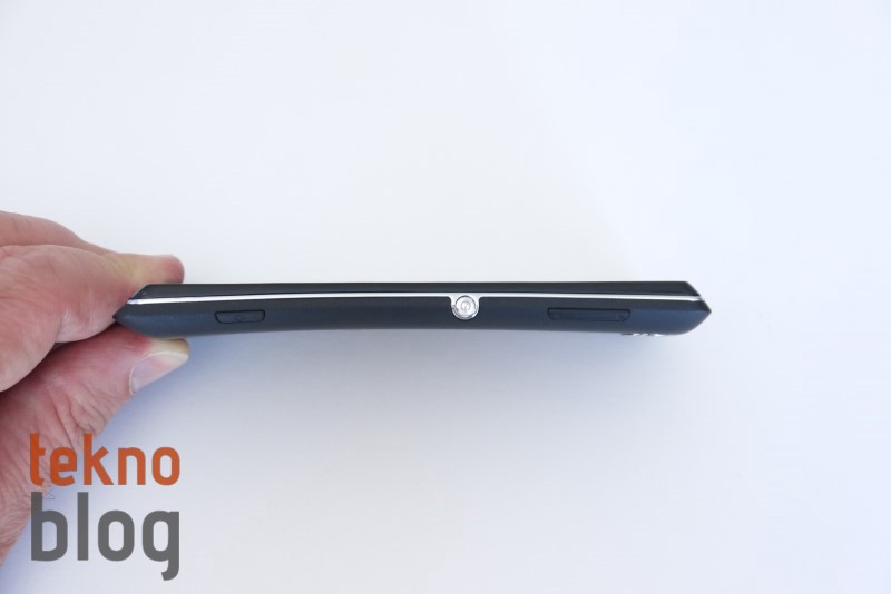 Xperia L’nin sol kenarında microUSB portu yer alırken sağ kenarında yukarıdan aşağıya doğru sırasıyla ses, güç ve kamera butonları bulunuyor. Güç butonunun tasarım bakımından diğer Xperia Android telefonlarının çizgisini tutturduğu görülüyor. Aslında bu noktada ses ve kamera butonları için de benzer bir genelleme yapılabilir. Üstte 3.5 mm.’lik kulaklık jakı yer alıyor.