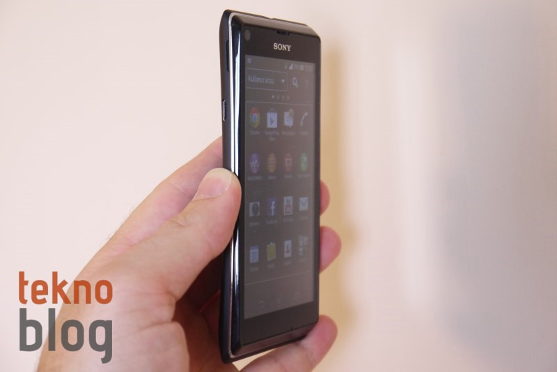Xperia L aslında daha az yüzey alanı kaplayan bir telefon olabilirdi. Ancak üstte ve altta uçlara doğru sivrilen üçgenimsi tasarım tercih edildiği için telefonun boyu, 4.3 inç ekranın boyunu normale göre biraz daha fazla aşıyor. Neyse ki, genişlik konusunda Xperia L fazla abartıya kaçmıyor. Ön bölümün büyük kısmını 4.3 inç TFT kapasitif dokunmatik ekran kaplıyor. 480 x 854 piksel çözünürlük değerine sahip olan bu ekran 228 ppi gibi bir piksel yoğunluğu sunuyor. Orta sınıf Android telefonların genellikle bu seviyede piksel yoğunluklarıyla geldiğini görüyoruz. Görüntü kalitesi bakımından rahatsız edici bir durumun olduğunu söyleyemeyiz. Ekran yüksek sayılabilecek görüş açılarına sahip, her ne kadar açı arttıkça renklerde değişimler biraz daha fazla hissedilse de genel olarak kullanıcı deneyiminin pek de olumsuz yönde etkilendiğini söyleyemeyiz. Ekranın derin siyahlara ve parlak beyazlara sahip olması da görüntü kalitesini olumlu yönde etkileyen önemli bir unsur olarak karşımıza çıkıyor. Ekranın güneş ışığı altında da iş görecek derecede parlaklık sunduğunu belirtmemiz gerekiyor.