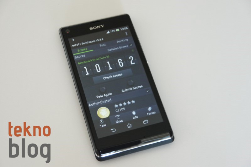 Benchmark testlerinde Xperia L orta sınıf Android telefonlarıyla aynı çizgide sonuçlar veriyor. AnTuTu Benchmark testinde 10616 puan elde eden uygulama Quadrant Standart testinde de 4234 puanla geçen senenin başında çıkan HTC One X’e yakın bir performans elde ediyor. İnternet tarayıcı performansını ölçmek için başvurduğumuz SunSpider Benchmark testindeyse Xperia L, 2699.4 ms +/- %1.9’luk sonuç ile vasat bir performans çiziyor. Doğrusunu söylemek gerekirse SunSpider Benchmark testinin sonucu bizi pek şaşırtmadı. Chrome internet tarayıcısı web sayfalarını hızlı şekilde buluyor ve indirmeye başlıyor, ancak özellikle kod bakımından yoğun masaüstü sitelerde bazı bölümlerin yüklenmesi az da olsa zaman alıyor.